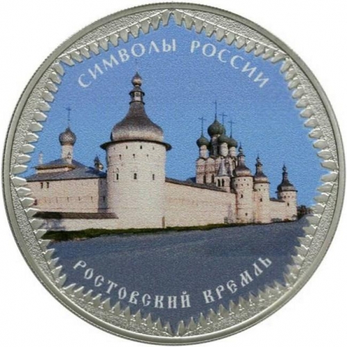 9) в центре диска в картуше – цветное изображение Ростовского кремля, надписи вдоль канта – вверху: "СИМВОЛЫ РОССИИ", внизу: "РОСТОВСКИЙ КРЕМЛЬ".