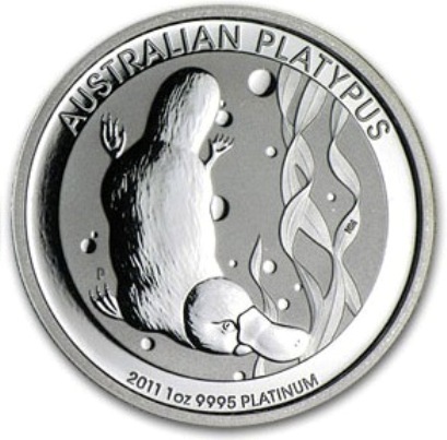 Аверс: изображен плывущий под водой утконос вокруг водорослей и пузырей. По кругу — надписи: «Australian Platypus» (Австралийский Утконос), год выпуска монеты, вес - 1 oz (1 тройская унция), проба - 9995 Platinum (0,9995 чистой платины).