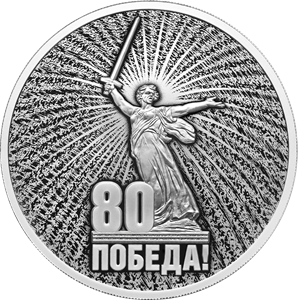 Серебряная монета 3 рубля "80 лет Победа в ВОВ", 2025 год, 31,1г., Ag 925