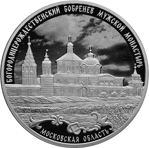 Серебряная монета 3 рубля "Богородицерождественский Бобренев мужской монастырь, Московская область" Ag 925, 31,1 г., 2021 год, ПРУФ