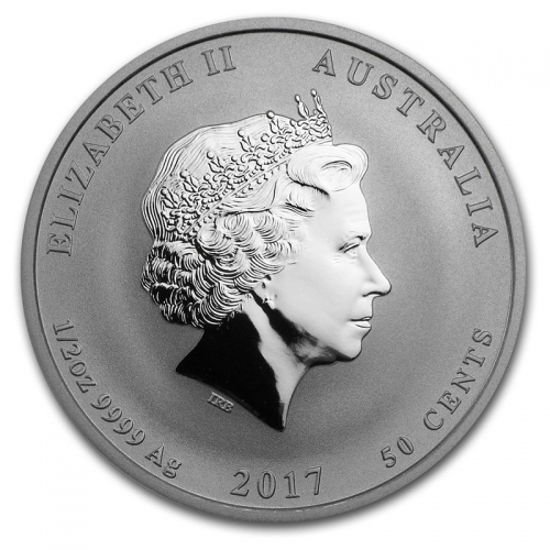 Серебряная монета Австралии 50 центов "Год Петуха" 1/2 унции 2017 год
