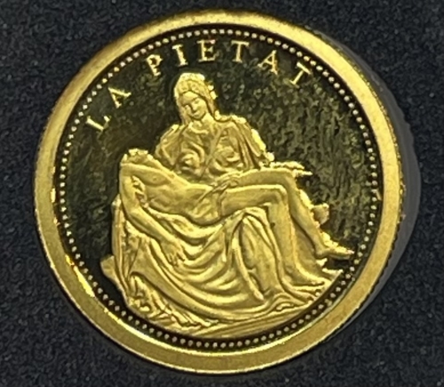 ГлавнаяКаталог монетЗолотая монета 2 динер "Скульптура Пьета" Работа Микеланджело 2008г., Андорра, Au 999, 1г.