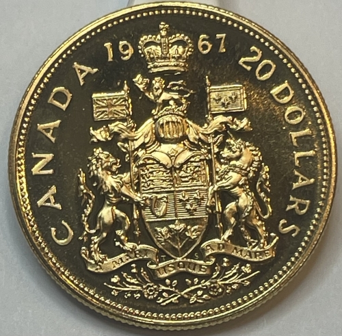 Золотая монета 20 долларов "100 лет Конференции Канада" 1967г., Au 900, 18,294г.