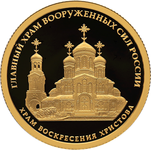 Золотая монета 50 рублей "Главный Храм Вооруженных Сил Российской Федерации" Храм Воскресения Христова 7,78 г. 2020 г.